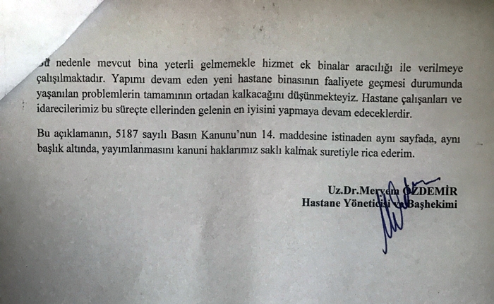 Devlet hastanesinden gönderilen tekzip metninin tamamı aşağıdadır.