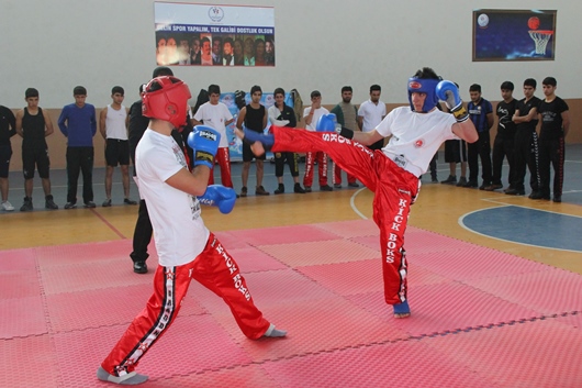 Kapalı spor salonunda 60 öğrencinin katıldığı kick-boks kursu kuşak sınavı kurs öğretmeni Sinan Ağlar tarafından yapıldı. Erciş’te ilk defa yapılan kick-boks kuşak sınavına öğrencilerin ilgisi yoğun oldu. Baran, İlçe Spor Müdürü Abdulselam Elçi ve velilerin katılımıyla kapalı spor salonunda yapılan sınav renkli geçti. Sınav sonrasında 260 saat kick-boks kursu alan 15 sporcunun da sertifikaları verildi.
