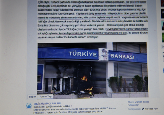 7-8 Ekim Kobanê eylemleri sırasında haber takibi yapan Gazeteci İdris Yılmaz'ı Erciş'teki Ülkü Ocakları yazdığı haberleri paylaşarak hedef haline getirdi. Yaşanan olaylardan Yılmaz'ı sorumlu tutan ifadeler kullanan Ülkücüler, kendilerine ait facebook sayfalarında Yılmaz'ı provakatörlükle suçlayarak yaşanan olaylardan sorumlu tutuyor. Ercişli Ülkücüler sosyal paylaşım sitelerinde Yılmaz'ı provokatörlükle suçlamakla yetinmeyerek, çeşitli İfadelerde Ercişlileri Yılmaz'a karşı kışkırtılması ise dikkat çekiyor.