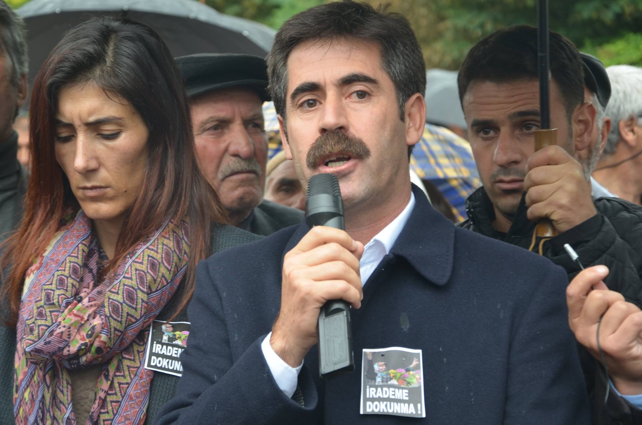 Erciş Belediyesi eş başkanı Diba Keskin ve HDP İlçe eş başkanı Seval Çadırcı geçtiğimiz gece 'özyönetim' açıklamasına katıldıkları gerekçesiyle gözaltına alınarak nöbetçi mahkemece tutuklanması bugün yüzlerce Erciş'li tarafından yapılan basın açıklaması ile protesto edildi.Zilan Parkı'nda yapılan protestoda basın metnini okuyan Erol Cengiz, tutuklamanın hukuksuz olduğunu söyleyerek yapılanların siyasi soykırım olduğunu dile getirdiği konuşmasının ardından eş başkan Keskin'in avukatları aracılığıyla gönderdiği mesajı okudu.Van Büyükşehir Eş başkanı Bekir Kaya ve HDP Van milletvekili adayı Nadir Yıldırım birer konuşma yaptı.