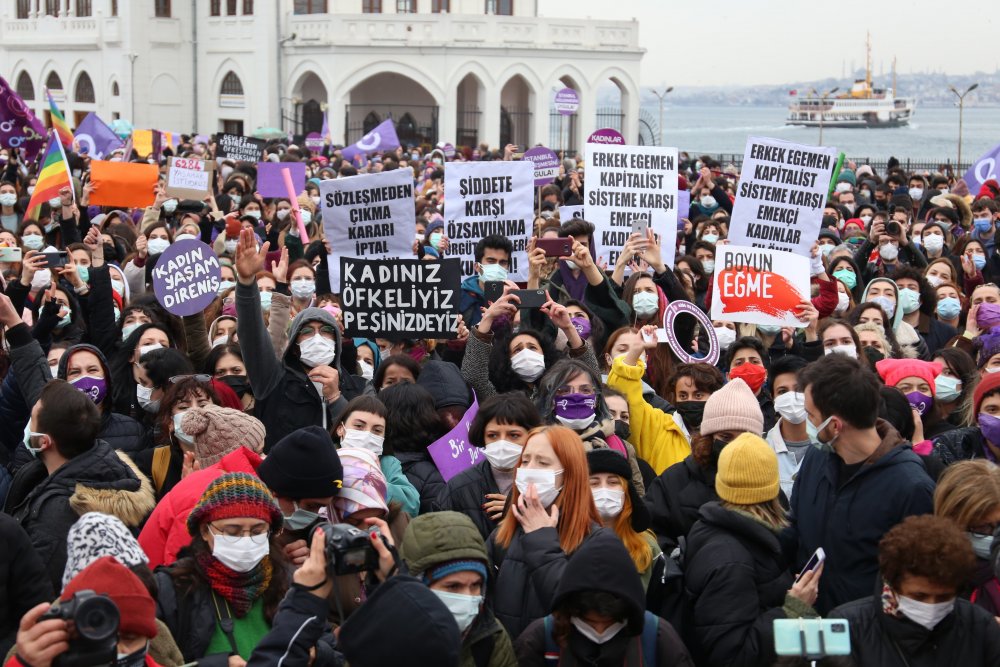 İstanbul Sözleşmesi'ni Uygula Kampanya Grubu, Cumhurbaşkanlığı Kararnamesi’yle Türkiye’nin İstanbul Sözleşmesi’nden çekilmesini protesto etmek amacıyla Kadıköy’de bulunan Beşiktaş İskelesi’nde bir araya gelerek basın açıklaması gerçekleştirdi. Açıklamada "İstanbul Sözleşmesi bizim, vazgeçmiyoruz" pankartı açılırken, "Kararınız mutlak kötülüğün 'yasal' hali" ve "Yaşasın kadın dayanışması" dövizleri taşındı. Sık sık, "Susmuyoruz, korkmuyoruz, itaat etmiyoruz", "Zıplamayan Tayyip'tir" ve "Geceleri de sokakları da meydanları da terk etmiyoruz" sloganları atıldı.