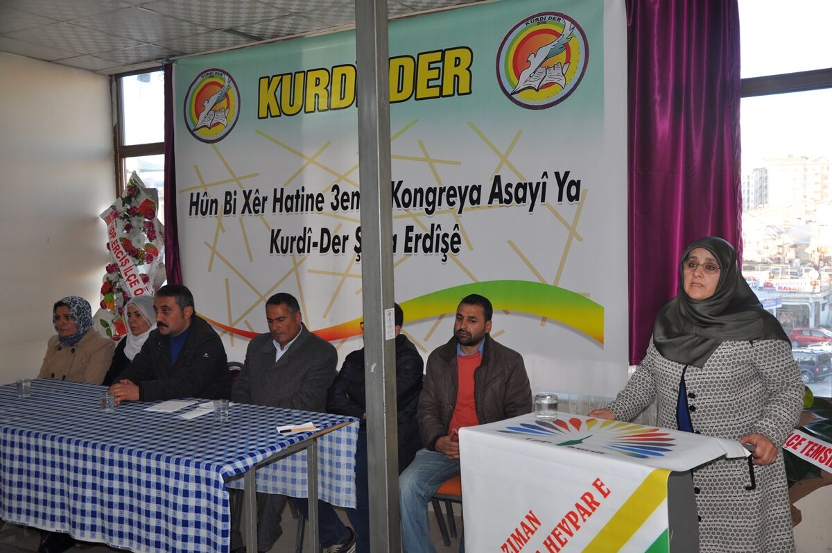 Van’ın Erciş İlçesi KURDİ-DER Şubesi 3’üncü Olağan Kongresi’ni HDP Erciş ilçe binası toplantı salonunda gerçekleştirdi. Kongreye HDP İstanbul Millet vekili Hüda Kaya, DBP Merkez Yönetim kurundan Şehmus Bülbül, Erciş HDP ilçe eş Başkanı Selcuk Aladağ, DBP, HDP ilçe yönetimi, Tuhad-Der, Eğitim-Sen , Erciş Belediyesi Eş Başkan Vekili Güler Avcı ve çok sayıda yurttaş katıldı.
