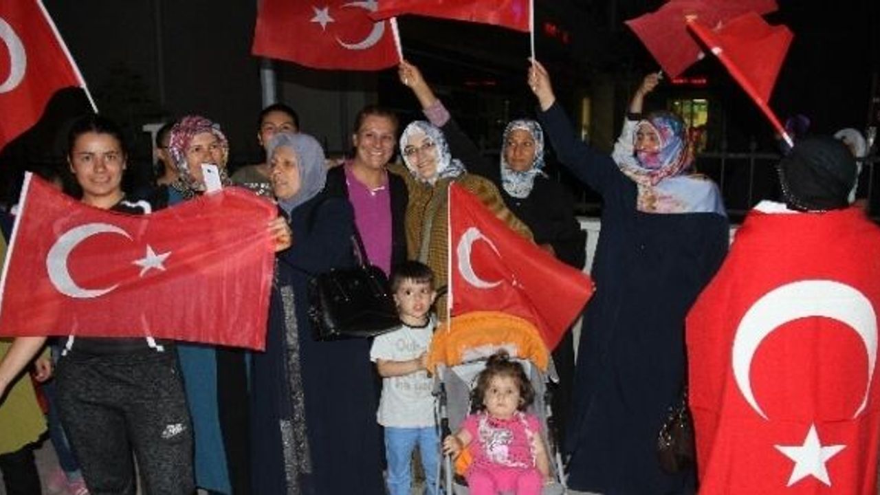 Kalabalık geç saatlere kadar bayraklarla caddede sloganlar atarak demokrasi nöbetini sabaha kadar sürdürdü.