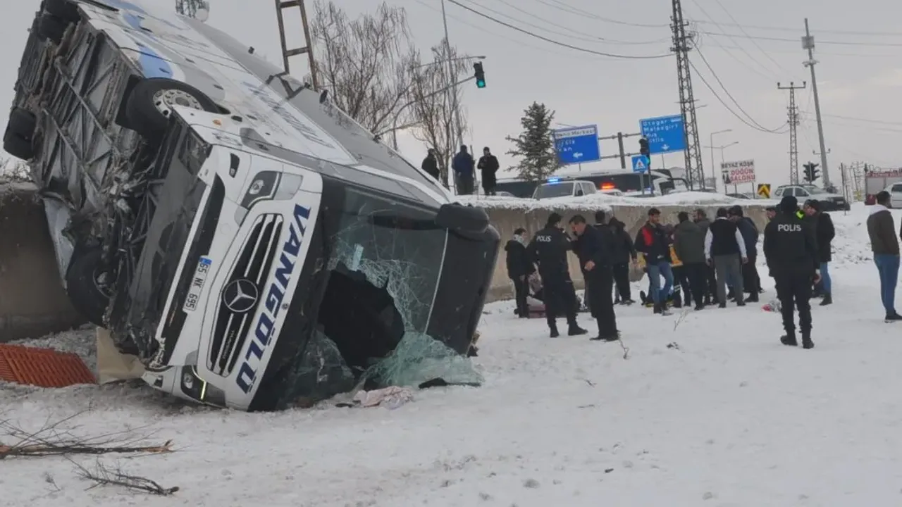 Ağrı’nın Patnos ilçesinde kontrolden çıkan bir yolcu otobüsünün istinat duvarından araziye devrilmesi sonucu meydana gelen kazada, ilk belirlemelere göre 16 kişi yaralandı.