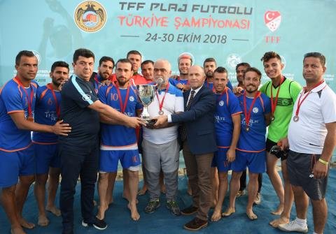 Alanya Galip Dere Plajı'nda 24 Ekim'de başlayan 2018 TFF Plaj Futbolu Ligi Finalleri, oynanan 3.lük ve final müsabakaları ile tamamlandı. Günün ilk karşılaşmasında The Anılife Otel Arsuz Belediye Spor , Manavgat Belediye Spor'u 10-4 yenerek 2018 TFF Plaj Futbol Ligi Türkiye Üçüncüsü oldu. Alanya Belediye Spor ile Erciş Belediye Spor takımlarının karşı karşıya geldiği final mücadelesini ise Erciş Belediye Spor 7 - 6 kazanarak şampiyonluğa ulaştı.