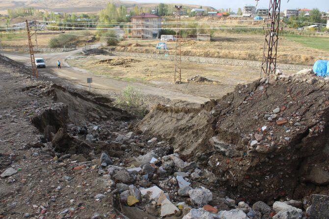 Van merkez Edremit ilçesinde etkili olan sağanak yağış, toprak kaymasına neden oldu.