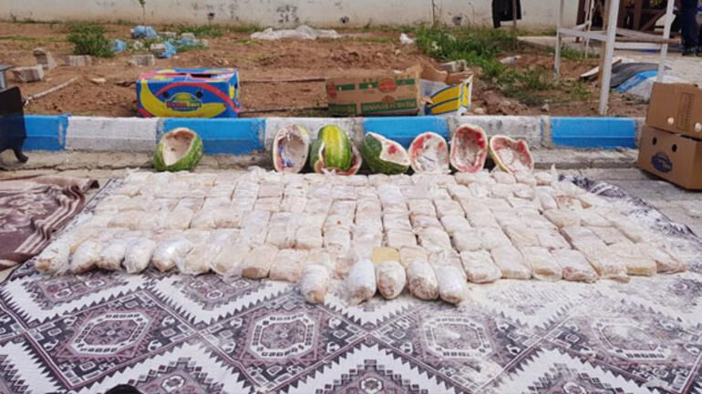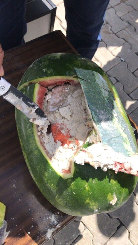 HABER MERKEZİ- Van Emniyet Müdürlüğünden yapılan açıklamada, Narkotik Suçlarla Mücadele Şube Müdürlüğü ekiplerince Gevaş karayolu üzerinde şüphe üzerine çekici ve dorsesinde arama yapıldığı belirtildi. Narkotik madde arama köpeği Alfa'nın da katıldığı aramada, aracın dorsesinde yüklü karpuzların içerisine zulalanmış 126 paket halinde toplam 65 kilo 750 gram eroin ele geçirildi. Olayla ilgili 2 şüpheli şahıs gözaltına alınırken, soruşturma çok yönlü devam ettiği bildirildi.