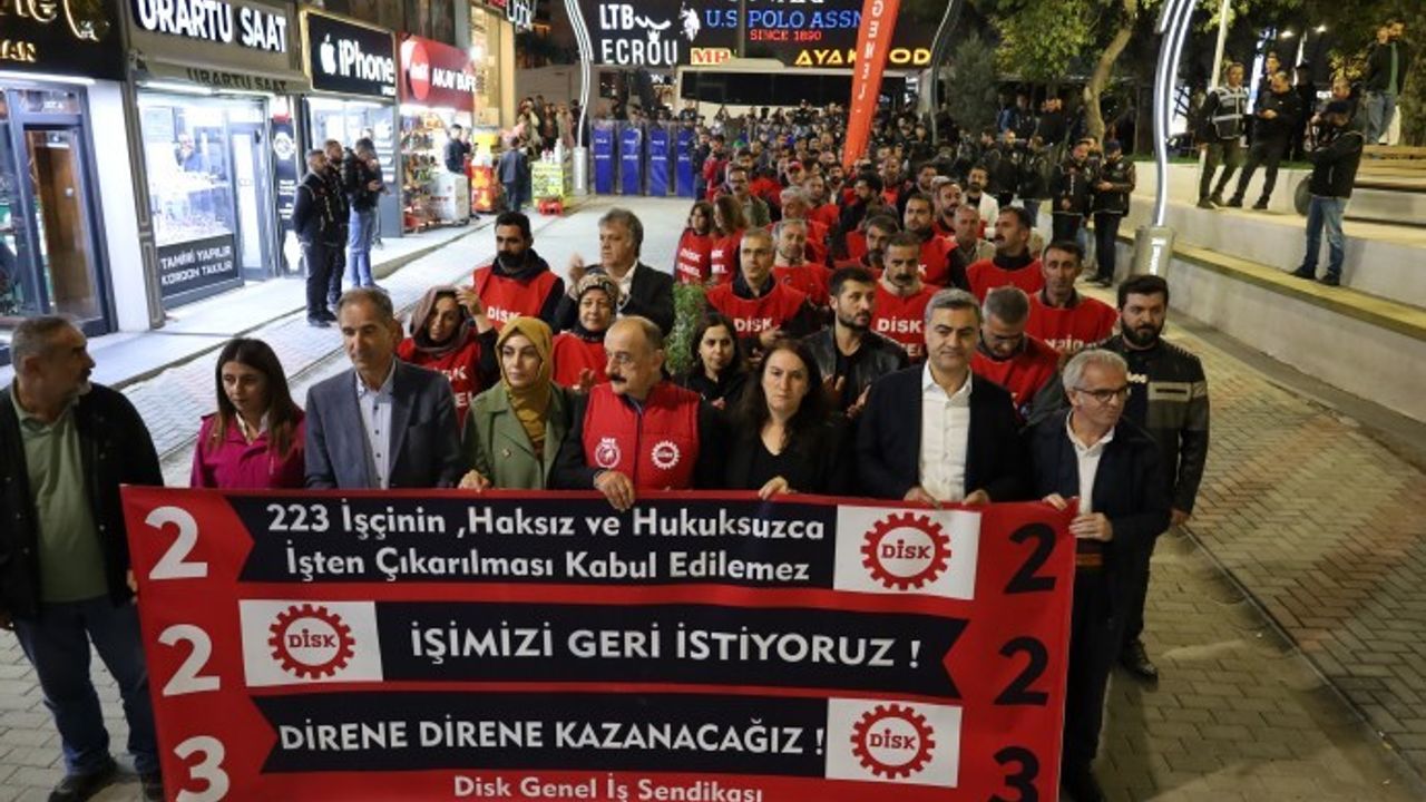 Devrimci İşçi Sendikaları Konfederasyonu (DİSK) ve DİSK Genel-İş Van Şubesi öncülüğünde 223 işçinin "İşimizi geri alacağız" şiarıyla başlattığı direniş 75'inci gününde. Sanat Sokağı'nda bir araya gelen işçiler, polisler tarafından ablukaya alındı. Yürüyüş yapmak isteyen işçilerin yürüyüşüne engel olmak isteyen polislere karşı kitle alkış ve sloganlarla tepki gösterdi. Tepkinin sonucunda kısa bir yürüyüş ve basın açıklaması gerçekleştirildi. “223 işçinin haksız ve hukuksuzca işten çıkarılması kabul edilemez. İşimizi geri istiyoruz. Direne direne kazanacağız” yazılı pankartı açan işçiler, sık sık, “Hak Hukuk Adalet”, “Berxwedan jiyan e kayyım talan e” ve “Van halkı burada hırsız kayyım nerede?” sloganları attı. İşçilerin açıklamasına, yerine kayyım atanan Van Büyükşehir Belediye Eşbaşkanı Abdullah Zeydan, ilçe belediye eşbaşkanları, kentte bulunan sivil toplum örgütleri ve çok sayıda yurttaş destek verdi.