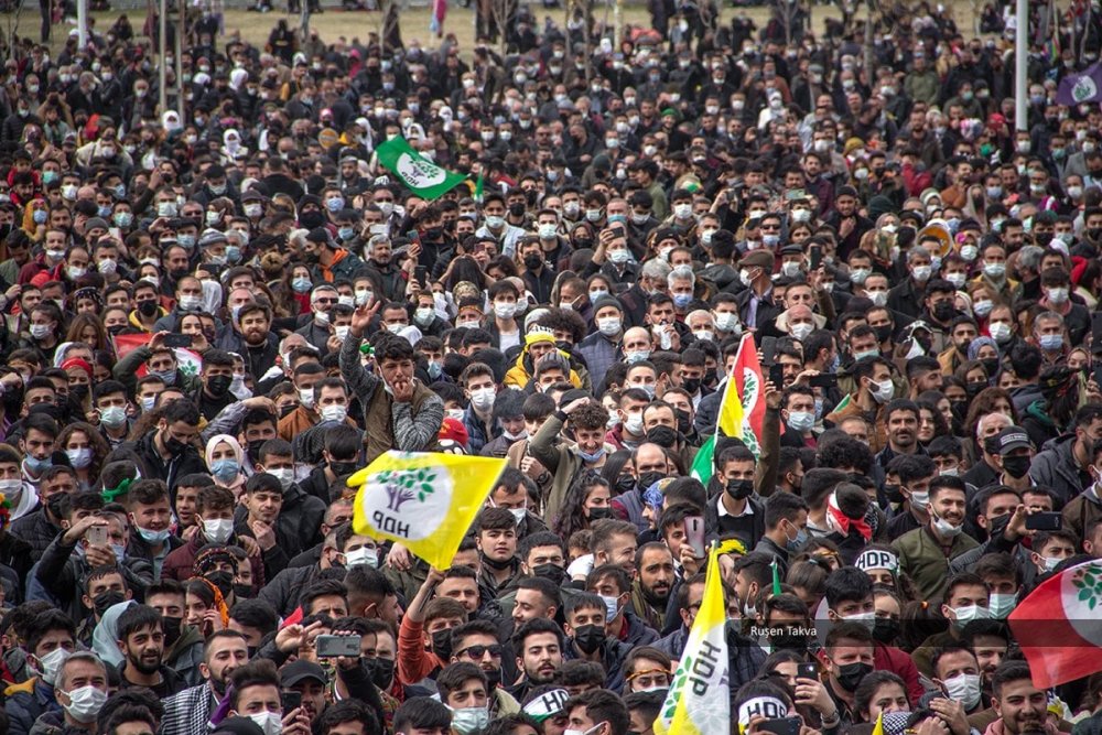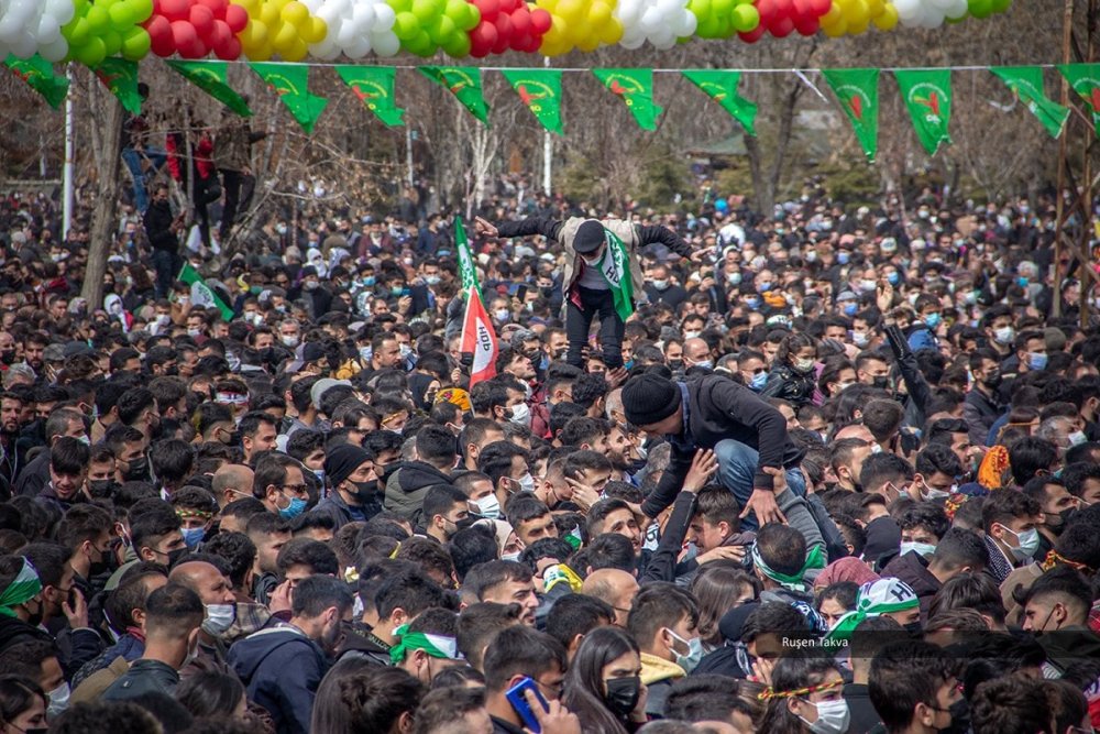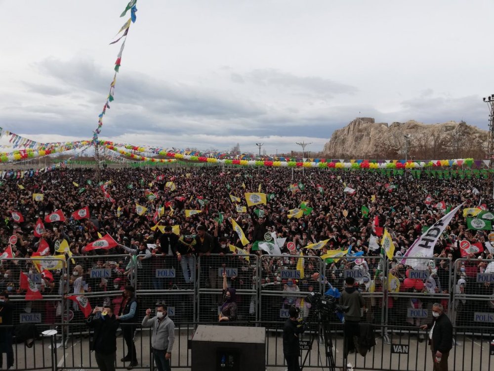 Van Kalesi etekleri son yılların en görkemli Newrozu'na sahne oludu. "Newroz ateşiyle direnelim, özgürleşelim" şiarıyla gerçekleştirilen kutlamaları büyük bir coşkuyla başladı. Sabahın erken saatlerinde binlerce kişi iki noktadan Newroz alanına akmaya başladı. Rengarenk elbiselerle halaya duran on binler ellerinde HDP bayrakları taşıyarak, çeşitli sloganlarla parti hakkında açılan kapatma davasına tepki gösterdi.