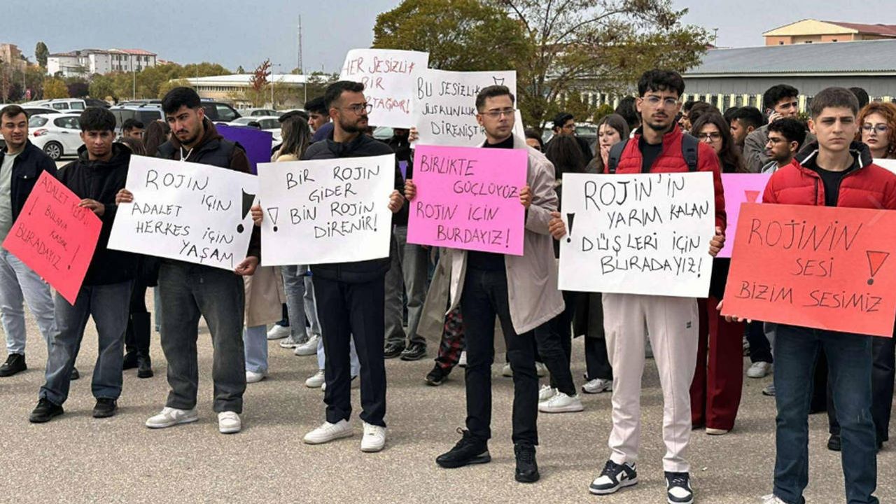 Rektörlük binası önünde toplanan öğrenciler, “Rojin için adalet”, “Susma, sustukça sıra sana gelecek”, “Rojin’in sesi bizim sesimiz”, “Hakikat suda kaybolmaz” ve “Bir Rojin gider bin Rojin direnir” sloganları attı.