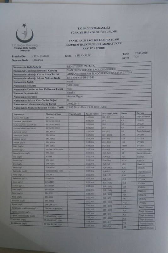Bu anlamda ilçede birkaç bölgeden alınan ve ilçe Sağlık Merkezi tarafından yapılan su analizi test sonuçlarını siz değerli halkımızla paylaşma gereği duyduk.Halkımızın bilgisine arz olunur.